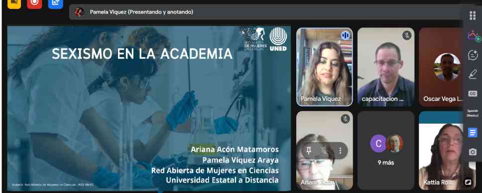 Las expositoras Pamela Víquez Araya y Ariana Acón Matamoros (UNED – Red Abierta de Mujeres en Ciencias) y Kattia Rodríguez Brenes (UTN) analizaron, cómo el sexismo y los estereotipos de género moldean la percepción y la participación del estudiantado en el ámbito universitario, así como las brechas específicas en STEM. Se discutieron ejemplos de micromachismos en el aula (manterrupting, mansplaining, bropiating, entre otros) y su impacto en la autoconfianza, desempeño y permanencia de las mujeres en estas áreas.