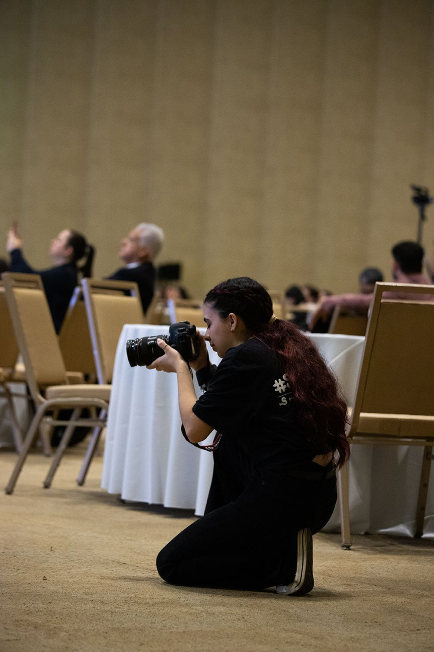 Por su parte, la directora Fuster Barahona, subrayó la relevancia de que el estudiantado participe activamente en eventos internacionales de alto nivel: “El registro fotográfico del CAEI 2025, brindó a nuestros estudiantes la oportunidad de enfrentarse a un entorno profesional real, exigente y multicultural, donde pudieron aplicar y perfeccionar sus competencias técnicas y de trabajo en equipo, adaptándose a las exigencias del género de reportaje en una cobertura de un evento.