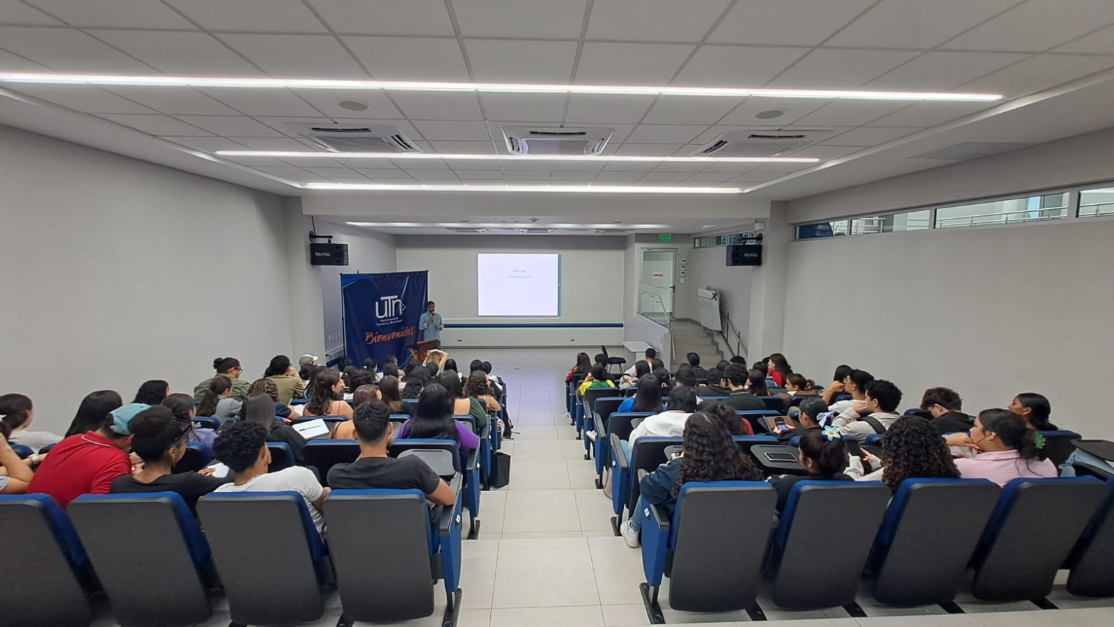 La actividad reunió a estudiantes de la carrera de Ingeniería en Gestión Ambiental de distintos niveles, así como a participantes del curso de Expresión Oral en Inglés I, en un espacio de análisis y reflexión sobre el papel del conocimiento científico en los procesos de conservación ambiental y desarrollo territorial.