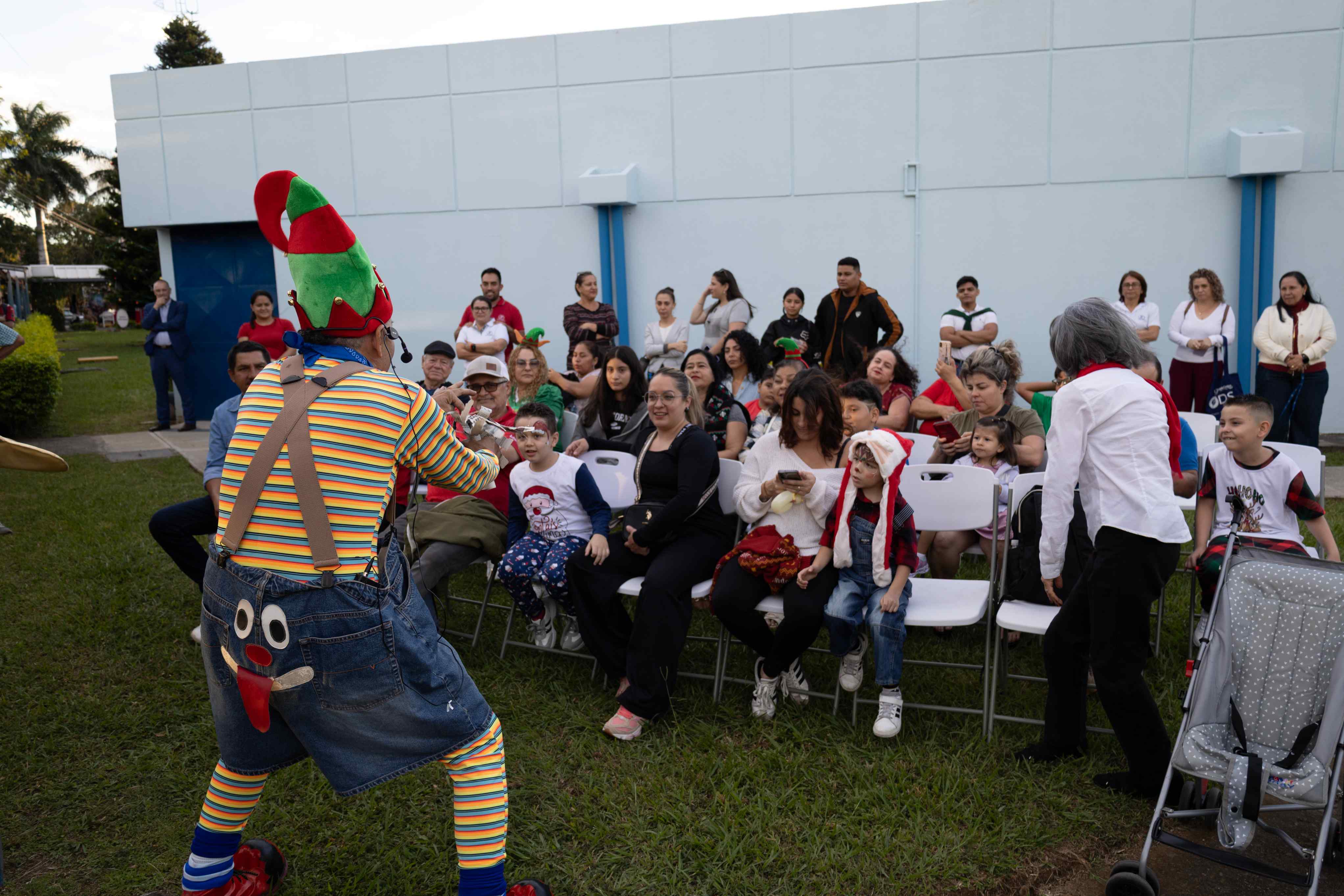 Posteriormente, el Programa Ágape enriqueció la tarde con una muestra artística llena de identidad y tradición. El Grupo de Folclore Grano de Oro ofreció una presentación cargada de cultura y raíces costarricenses; además, la alegre participación de la cimarrona realizó un dinámico recorrido por el campus, invitando a las personas asistentes a sumarse a la fiesta navideña y llenando los pasillos de música, color y energía.